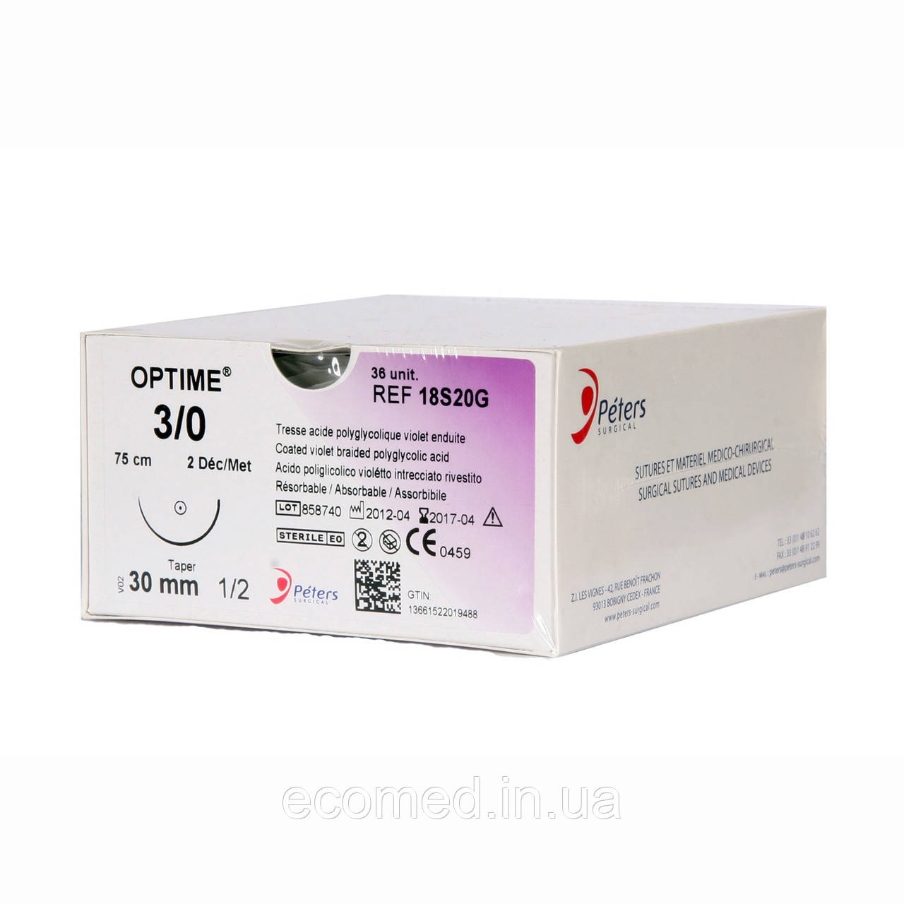 Нитка, що розсмоктується, OPTIME (Вікрил) 3/0, колюча 22мм, 1/2, довжина 75CM, 1шт.