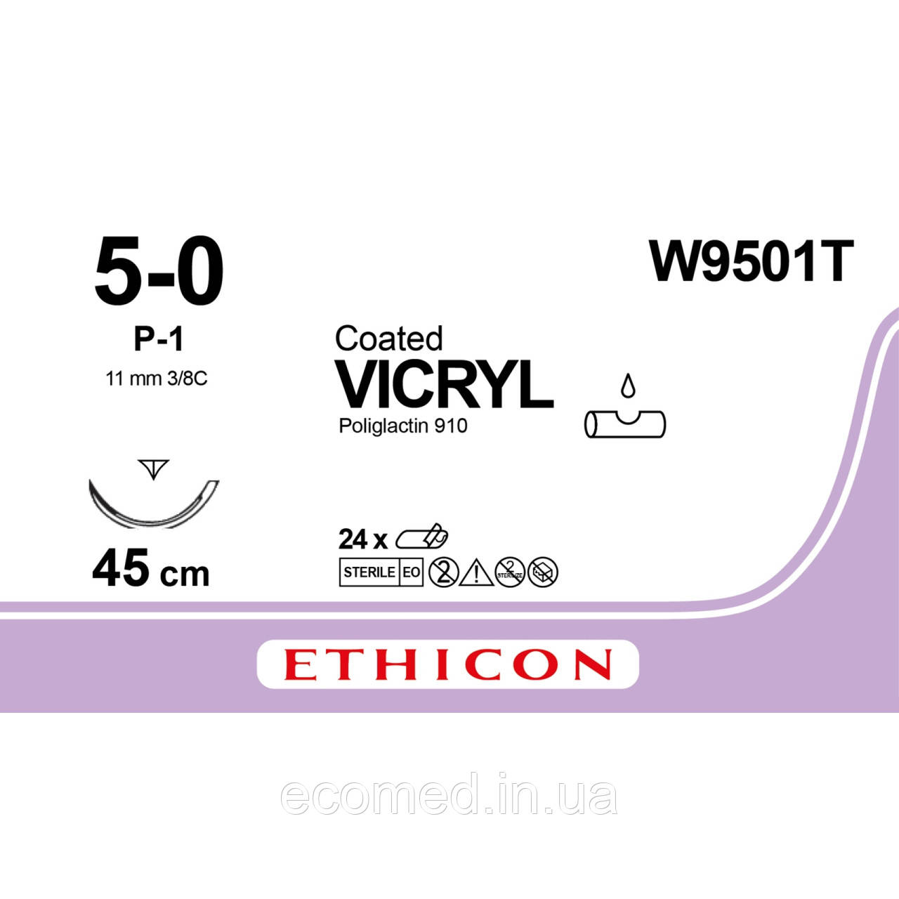 Вікрил (VICRYL) 5-0 П-зворотньо-ріжуча 11мм, 3/8кола, незабарвлений 45см, 1шт.