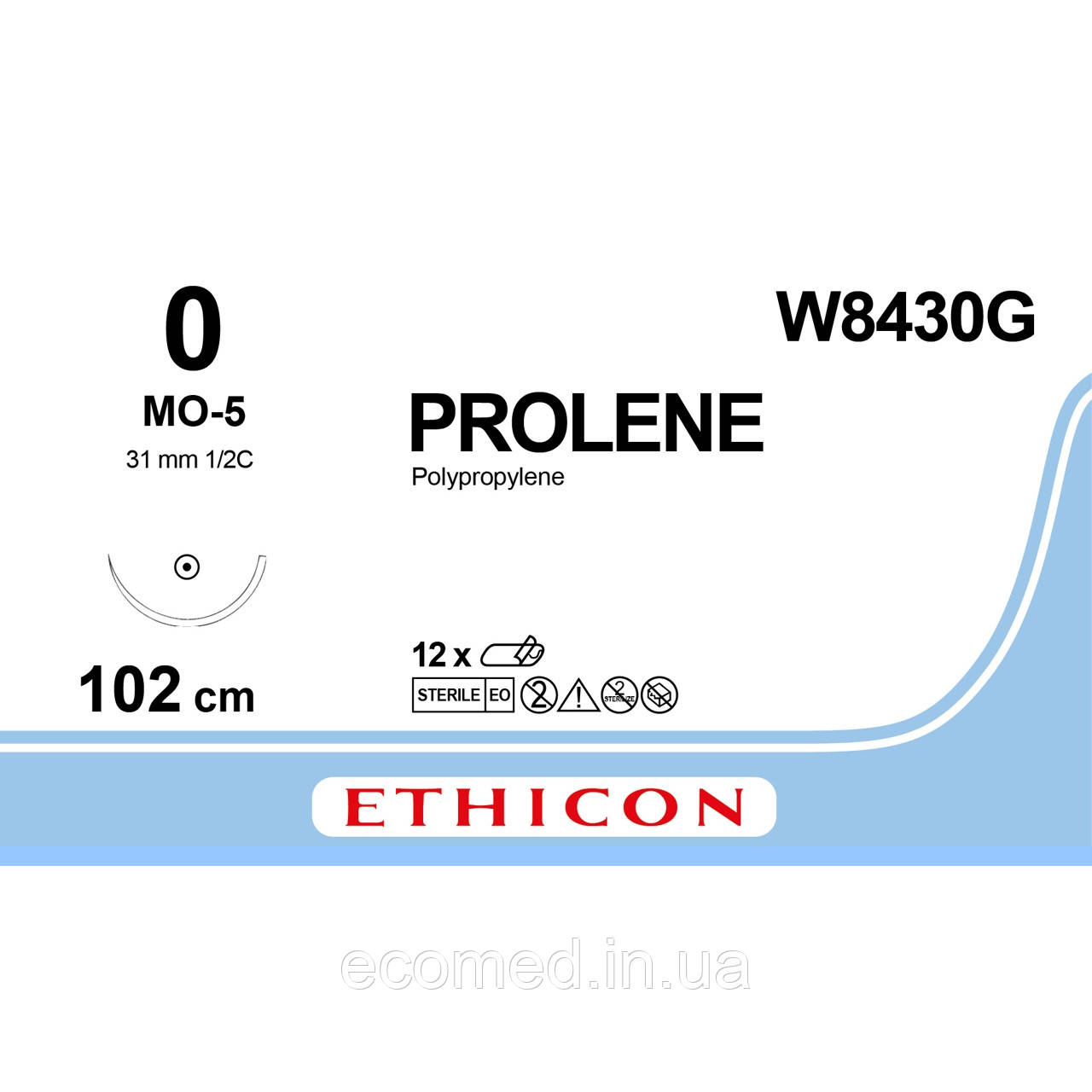 Пролен (Prolene) 0 колюча масивна Тапер Поінт (Taper Point) 31 мм, 1/2кола, блакитний 100см